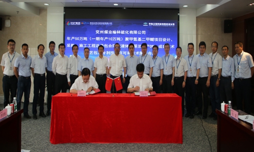 6月11日,兖州煤业榆林能化有限公司年产50万吨(一期年产10万吨)聚甲氧基二甲醚项目工艺包、专利技术许可合同,设计、采购、施工总承包合同签约仪式在华陆大厦举行。