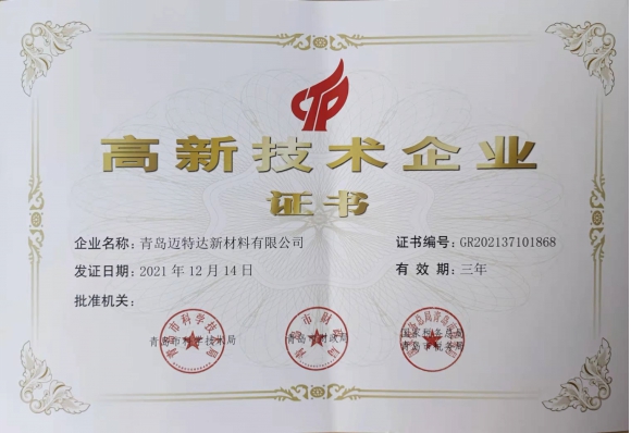 青岛迈特达新材料有限公司成立于2014年10月,坐落于山东科技大学国家级大学科技园,公司研发团队由博士、硕士学位的高级技术人才组成,是一家集技术开发、技术咨询、技术转让、技术服务于一体的具有原创技术开发能力的高新技术企业。公司立足化工新材料领域,着眼社会未来的发展,奉行绿色环保的理念,经过多年的潜心研发,在聚甲氧基二甲醚、高浓度甲缩醛、丁烷氧化生产叔丁醇与甲乙酮、烷基叔丁基醚、催化新材料等领域取得了一系列重大突破,获得了多项专利技术和专有技术,拥有自主知识产权的国家专利十几项。