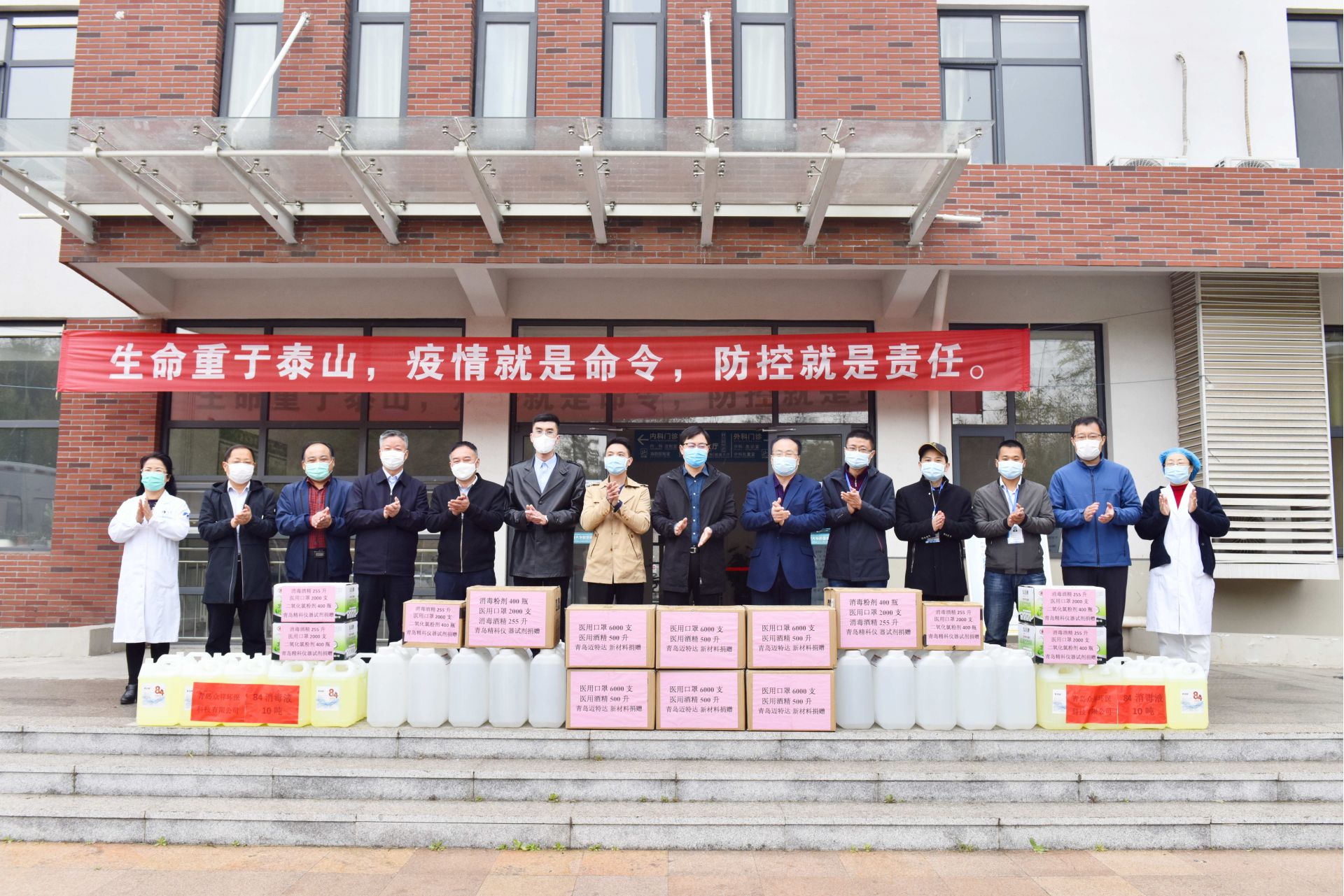 4月8日,我公司向山东科技大学捐赠6000支医用口罩和500升75%医用酒精,助力学校开学前疫情防控工作。